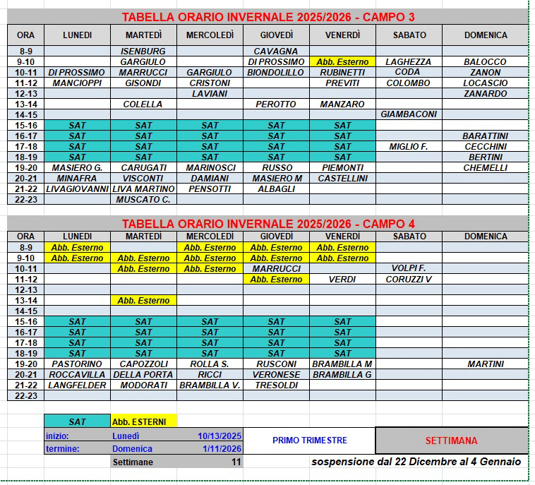 trovate in allegato il tabellone relativo all’ occupazione dei campi per il primo trimestre con l’aggiunta degli abbonamenti venduti agli esterni.